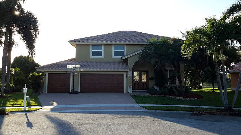 4.5 bedroom, 2.5 bathroom 2 story home with 3 car garage & pool. Home features 1/4 acre lakefront location on cul-de-sac. Large master bedroom with tray ceiling and large walk-in closets. Large master bath with large shower, jetted soaking tub and his/hers sinks. 4th bedroom features attached office. Upgraded appliances with front loading washer and dryer. Tile 1st floor and bath, with matching light colored wood laminate throughout bedrooms. Large covered and screend patio area overlooking free form pebblesheen finished lagoon style pool. Home sits on 1/4 acre, pie shaped lot with 125 feet of waterfront land overllooking expansive lakeviews. Featuring hurricane impact windows and front entry doors. Recently upgraded AC, pool pump and water heater & sprinkler pump. Sprinkler fed from lake. Includes swingset. Original owner, house was purchased and built new in 2001 and meticously maintained. In "A" Rated school district Park Vista H.S., Woodlands M.S. & Coral Reef Elementary.