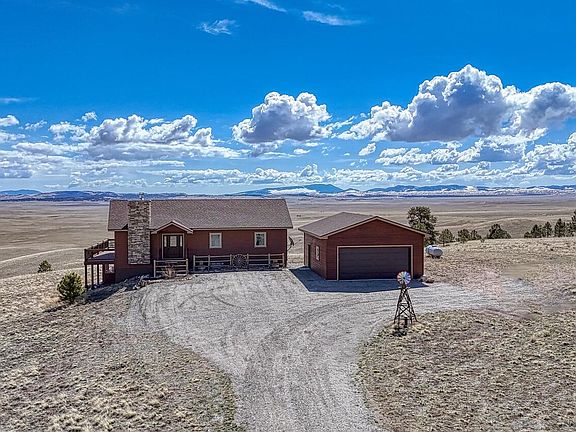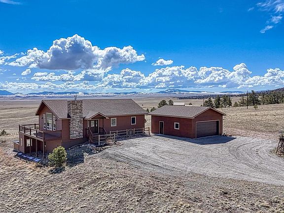 This exceptional custom-built home offers breathtaking 360-degree views and a perfect blend of rustic charm and modern amenities. Thoughtfully designed with high-end finishes and plenty of space to expand, this property is ideal for those seeking comfort, style, and functionality. Enjoy panoramic mountain vistas from every angle, providing a stunning backdrop for daily living. Featuring pine ceilings, pine trim, and barn wood sliding doors, this home exudes warmth and rustic charm. The rock fireplace serves as a striking centerpiece in the living area. The kitchen boasts stainless steel appliances and engineered laminate flooring for a stylish and durable finish. This home includes 2 bedrooms and 2 baths, with a primary suite featuring a walk-in closet, walk-in shower, and a beautiful copper sink. Soaring cathedral ceilings enhance the open, airy feel of the living spaces, adding to the home’s inviting ambiance. Step outside onto the expansive wrap-around deck to take in the stunning views and enjoy outdoor living at its finest. With 1,450 square feet of unfinished space, the lower level offers incredible potential for additional living space, including a workshop, living room, third bedroom, bath, and mechanical room. The oversized 2-car detached garage features 8-foot doors, providing plenty of room for vehicles, storage, or outdoor gear. The partially fenced yard offers privacy while still maintaining the open, scenic views. A 250-gallon cistern ensures a reliable water supply, adding to the home’s efficiency and practicality. The septic system is sized for a 3rd bedroom. It would not take much to finish the lower level. The information contained herein should be verified after buyer contracts to buy the property.