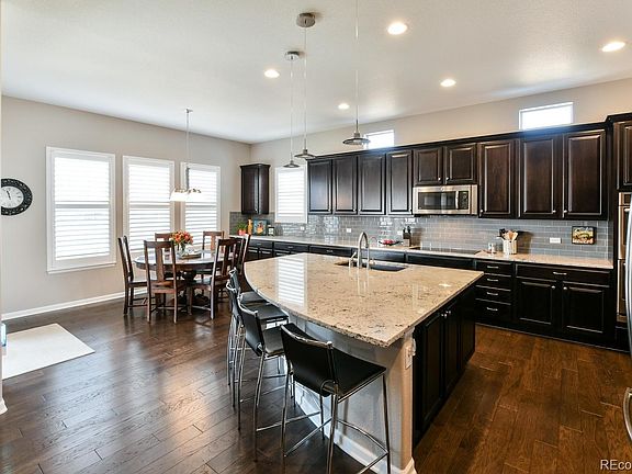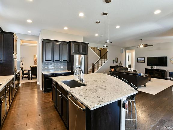 WELCOME TO THIS STUNNING 6 BR 6 BA HOME OFF THE 12th FAIRWAY OF SADDLE ROCK GOLF COURSE! PLANTATION SHUTTERS, 10' CEILINGS AND HARDWOOD FLOORS THROUGHOUT THE HOME. LARGE OPEN GREAT ROOM WITH FIREPLACE. HUGE KITCHEN OVERLOOKING THE GREAT ROOM WITH ISLAND, EATING AREA, AND LARGE PANTRY. FORMAL DINNING ROOM WITH BUTLERS PANTRY. SECONDARY BEDROOM, 2 BATHROOMS, STUDY AND LAUNDRY ROOM ON MAIN FLOOR. MOVE UPSTAIRS TO A LARGE PRIVATE MASTER SUITE, 2 LARGE CLOSETS AND SPA LIKE BATHROOM. LOFT, 3 ADDITIONAL SUITES WITH IN SUITE BATHROOMS. BASEMENT BOASTS SPACIOUS REC/BONUS ROOM WITH WET BAR, WINE REFRIGERATOR, WINE COOLER & BUILT-IN ENTERTAINMENT UNIT. ANOTHER PRIVATE SUITE WITH BATHROOM AND SPACIOUS FLEX SPACE FOR WORKOUT ROOM OR THEATER.