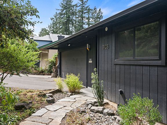 Magical Multnomah Village Ranch with so many features including an oversized living room with a beautifully tiled fireplace and open floor plan to the kitchen and dining room. Updated kitchen with newer appliances, soft close cabinetry, tile backsplash, quartz counters and a gas range. Large primary suite with en-suite bathroom and tile shower, beautiful tree-lined views to the private backyard. Hardwood floors throughout, 2 additional bedrooms with large closets, 2 car garage & driveway with electric car charging station. Private backyard with a covered deck and additional green space behind. Newer roof, new plumbing, new electrical panel and updated light fixtures and hardware. A short walk away to Multnomah Village and Gabriel Park! [Home Energy Score = 6. HES Report at https://rpt.greenbuildingregistry.com/hes/OR10185548]