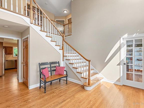 Popular Northwood Acres Custom Cedar 2 Story on Pretty wooded half acre lot! Welcoming 2 Story Entry Foyer with Hardwood Floors, Crown molding and Oak Staircase! French door leads to Den has a full wall built in bookcases! Large Living room flows into the formal Dining room with crown moldings and chair rail. Family sized Kitchen features Cherry Cabinets with roll out shelving and brand new Stainless Fridge, Micro and Stove, Huge center Island & Corian Counters, huge Pantry closet and hardwood floors that flow into the family room with Cathedral ceiling, skylights and lovely brick gas fireplace complimented by built in bookshelves on either side. Main floor mud/laundry room leads to the attached 3 car garage with 8ft. doors plus a convenient powder room w/upgraded granite top on the vanity. Expansive deck with Gazebo! Awesome Finished English Basement is ideal for entertaining complete with Foosball and Pool table. Finished Bonus/Flex! Can lights throughout plus large storage/mechanical room. Master Bedroom has 2 walk in closets, Tray Ceiling and full private bath with whirlpool tub and separate shower and dual vanity. 3 More bedrooms are very generous in size! Water Heater replaced in '20, Aprilaire '16, new fan in Central Air unit '20, GFA appx. within 10yrs. Freshly painted in light neutral colors and carpets were just cleaned. Newly seal coated driveway and 3 car garage! Close to Library and top rated Cary Schools, Town and Brand New Waterpark and outdoor pool! This home is bright and spacious and can close quickly!