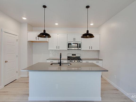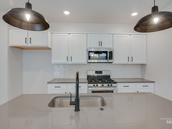 Get $30K now thru 5/31 with the Spring bonus! Step into a brand new home in Boise, Idaho and enjoy its benefits and stress free living! Live an elevated life in the Greenbrier 1887 that includes full fencing and landscaping. On the main floor, you are greeted with 9ft. ceilings throughout and you'll find an open living room, kitchen, and dining area that has plenty of room to move, plus large windows to allow in natural light. The living room is accented with gorgeous shiplap wall and modern design ceiling fan. The kitchen is a joy to cook in, with a solid surface countertops, large pantry w/barn door, stainless steel appliances with gas range. Upstairs is a cozy loft, perfect for a media room or playroom. The upper level primary suite is exquisite, including a walk-in closet, walk-in shower, and dual vanity sinks. Photos are similar. All selections are subject to change without notice, please call to verify.