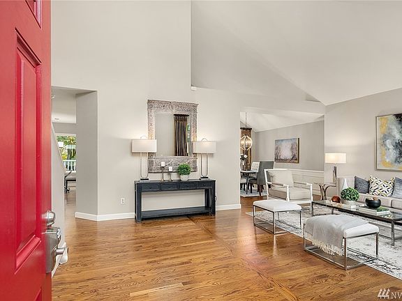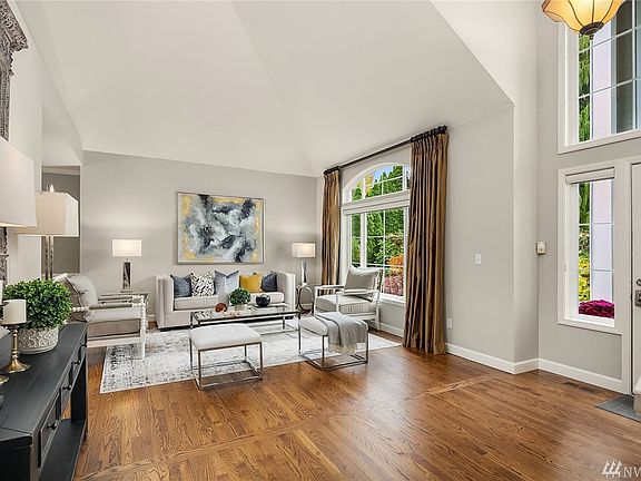 Beautiful, move-in ready home in Olympic Ridge. The bright, newly updated kitchen opens to living area with fantastic soaring ceilings and an abundance of windows. Beautiful new floors, grand entry and great entertainment space. Terrific office/flex room with separate exterior entry. Spacious lower level w/ media space, bonus room, and plenty of storage. Oversized laundry room on main level. Fenced, low maintenance yard backs to private green space. Issaquah Schools/Newcastle Elementary.