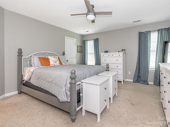 Beautifully well kept spacious home in fantastic location close to I-485 and minutes from uptown Charlotte. Home welcomes you with charming curb appeal from covered front porch into open living area with vinyl plank flooring throughout. Large windows, tall ceilings, and extra wide entryways keeps an open feel flowing throughout living into dining and kitchen. Kitchen has bright wood cabinets, granite counters, and full pantry plus a breakfast bar for additional seating! Primary bedroom with en-suite located on main floor perfect for privacy. Bathroom has dual sinks, standing shower and soaking tub. Upstairs is fully carpeted with a large hall landing area perfect for additional space. 2 guest bedrooms plus full bath. Fully fenced in yard with like new privacy fence just plus storage building, firepit, and concrete pad perfect for basketball! Physical property line extends 10 feet beyond fence. 2 car garage and driveway provides plenty of parking. This property won't last long!!
