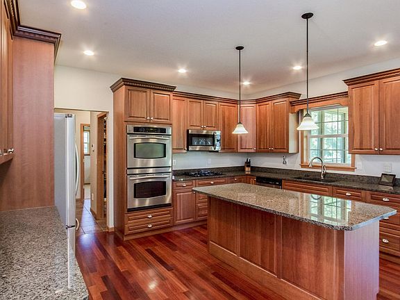 Prime location for this rare find in town acreage on a private wooded cul de sac. Enjoy the wildlife and the horses from your screened in porch. Spacious kitchen with eat in area, walk in pantry, first floor laundry room and first floor office. Finished lower level with walkout basement and additional storage garage perfect for all your extra toys. This homes comes with all the bells and whistles security system, irrigation system, central vac, gas grill with gas line and sound system.