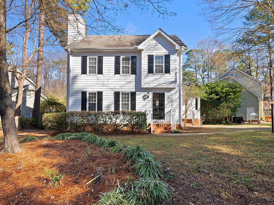 Warmth, charm, and convenience come together beautifully in this well-kept 3 bedroom, 2 bath home in popular Brittany Woods. Tucked in a quiet, established Raleigh neighborhood, this home offers easy living just minutes from RDU, shopping, dining, and commuter routes. The inviting family room features a brick fireplace with gas logs, built-ins, and great natural light. A separate dining room offers space to gather and entertain, while the kitchen provides good functionality with room to personalize and make your own. All bedrooms are on the second level, each with generous closet storage and comfortable natural light. The spacious primary suite features vaulted ceilings and dual closets, creating an open and airy retreat. A walk-up attic provides outstanding storage or future expansion potential, and the backyard offers a blank canvas for gardening, play, or outdoor living. With an unbeatable location, solid structure, and wonderful neighborhood setting, this home is ready for its next chapter and the updates that will make it truly shine.