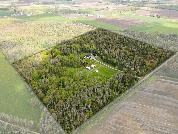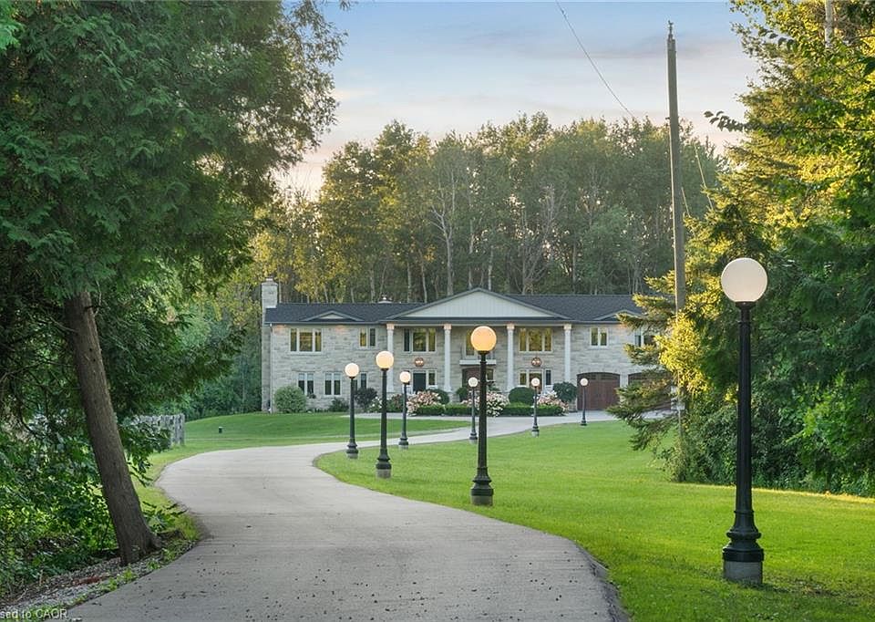 Discover a harmonious blend of luxury & nature in this beautifully reimagined country estate. Set amidst 40 ACRES of private forest with GROOMED TRAILS, this property celebrates craftsmanship & serenity in equal measure. NATURAL FINISHES like travertine flooring, Brazilian soapstone counters, hickory hardwood, & custom Mennonite cabinetry create an inviting, timeless interior. Thoughtfully expanded by 2,000 sq. ft. & meticulously updated over the past decade, this home includes modern features like GEOTHERMAL heating & cooling, a premium septic system, upgraded insulation, a durable & long-lasting Euroslate RUBBER ROOF, street lights, concrete patios, a full-home GENERATOR, & a PAVED laneway & circular driveway. Enjoy morning coffee on the front porch in front of the equestrian-inspired concrete GARDEN FOUNTAIN, or unwind by feeding koi & goldfish in the tranquil, fully lined POND with floating fountain, waterfall filtration system & aquatic plants. Equestrian enthusiasts will appreciate the five-stall BARN with loft & 3 fully fenced paddocks. The 3 Bay driving shed is a great addition to store all your gardening & trail riding vehicles and toys. With multiple outdoor lounging areas, you can chase the sun or seek the shade, then cap off the day with a soak in the HOT TUB under the stars. Indoors, gather around the RUMFORD FIREPLACE, built to maximize radiant heat while minimizing smoke or host a cozy movie night on the BIG SCREEN with built-in surround sound for a truly cinematic experience. A wood-fired PIZZA OVEN off the kitchen makes family nights unforgettable. Enjoy smart living with SONOS built-in speakers in three zones, Cat-5 wiring, video security, & a private internet tower. Located just 10–20 minutes from Guelph, Elora, Elmira, KW & Cambridge, this one-of-a-kind retreat offers the best of rural living with urban convenience close at hand.