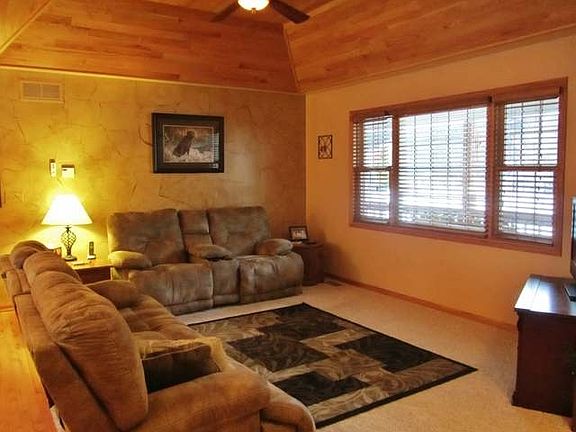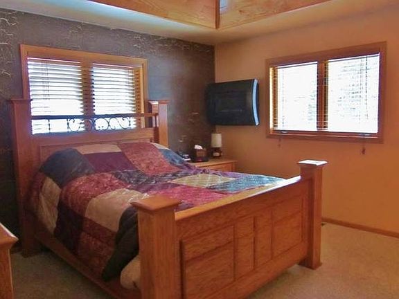 Executive Style Living encompasses this immaculate walk-out, hillside ranch home, located in Wisconsin's Northwoods. Lush, green landscaping w/underground sprinkler system, professionally designed for the .74 acres of land. An inviting front porch greets you as you enter the home. An impressive great room designed living space directs your attention to the all wood tray ceiling in the Living Room. A welcoming kitchen w/oak cabinetry, breakfast/snack bar & all appliances are included. Enjoy entertaining & dining with backyard views. The master bedroom suite also has a wood tray ceiling, European fireplace, walk-in closet, & full master bath. First floor laundry room w/cabinets. Walk-out lower level is completely finished with a huge family room, stone surround gas stove, a full bath & huge guest bedroom. Entertain & enjoy the deck, covered patio & fire pit in the backyard. Two car attached garage is finished and heated and a 2-car, 24x24 detached garage is also included!