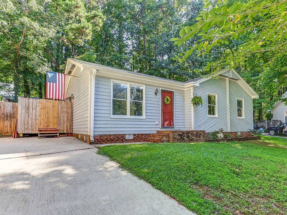 Recently renovated and updated, immaculate 3 bedroom home. Private, peaceful fenced backyard includes string lights, expansive deck, gravel/brick patio, storage shed, and more! New Roof, HVAC and Water Heater. New granite in hall bathroom, main bath features new soaker tub. New tile and floating shelves in master bath. New Laminate Flooring in living room, hallway and bedrooms. Kitchen boasts new counter tops, new stainless steel appliances, new tile floor and backsplash. Home is convenient to 540 and 440, North Hills, restaurants and shopping, and has easy access to the Shelley Lake nature trail system. No HOA fees!