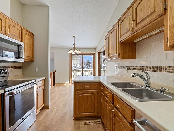 Welcome to your new home nestled in a serene cul-de-sac, where tranquility meets convenience. This inviting townhome boasts a spacious owner's suite complete with walk-in closet and a convenient walk-through bath, ensuring comfort and practicality. Vaulted ceilings adorn the living area, accentuating the sense of openness, while a skylight in the kitchen bathes the space in natural light. With a generous utility/furnace/laundry/storage room, staying organized has never been easier. The LL opens to a tuck-under double garage that offers hassle-free parking with guest parking nearby. Enjoy the convenience of nearby amenities, including Dred Scott park, ball fields, tennis courts, golf courses, and scenic trails, all just moments away. A must see!