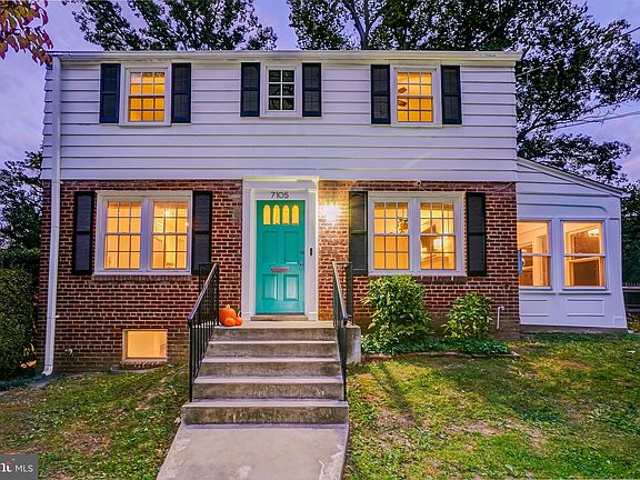Welcome to 7105 14th Avenue! This expanded and renovated classic colonial is perfectly located in charming and friendly Takoma Park, just steps from parks and trails. Built in 1948, and substantively updated over the past few years, this elegant home features an open renovated kitchen, tastefully appointed baths, gleaming hardwood floors, updated systems, detailed trim work, and wonderful architectural elements. The light-filled living room includes a cozy fireplace and provides ample space for relaxing. A sunroom, featuring a charming brick accent wall, built-in bench seating with storage, and access to the deck, is conveniently located just off the living room. This versatile space offers an ideal spot to unwind, enjoy the outdoors, or serve as a practical drop zone for busy daily living. The heart of the home is the open, renovated kitchen and dining room, designed for seamless entertaining and everyday living. The remodeled kitchen boasts granite countertops, a tile backsplash, custom cabinetry, chair rail molding, designer lighting, a wallpapered accent wall, and a stainless-steel appliance suite, including gas cooking. The main level also features a convenient powder room. Upstairs, you'll find three bright bedrooms with hardwood flooring, an updated bathroom, a linen closet, and a coat closet. The lower level offers a spacious family room with durable flooring, recessed lighting, a built-in pull-down Murphy bed, and great natural light. This level also includes a laundry room and additional storage space. The exterior is as lovely as the interior, with mature landscaping, colorful plantings, a deck, and a newer tree house! The home is just steps to Sligo Creek Park's trail and playgrounds, offering the opportunity to take a break in nature. Enjoy living in eclectic Takoma Park, with its vibrant sense of community, access to parks and playgrounds, and proximity to shopping, restaurants, and entertainment in both Takoma Park and downtown Silver Spring. Situated just steps from Sligo Creek Park, this home offers convenience and charm in equal measure.