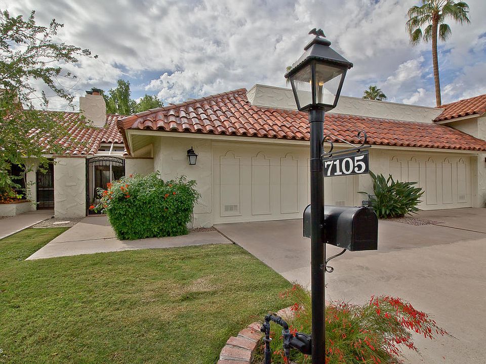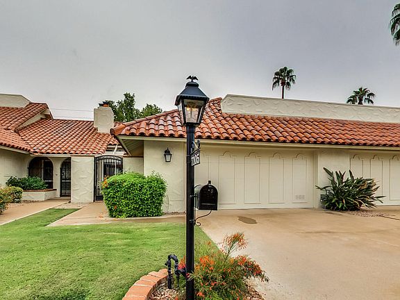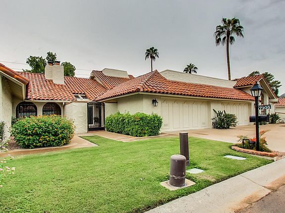 Enjoy the best Scottsdale & PV has to offer. Stunning home in a highly sought-after area near Scottsdale Fashion Square. Bright open plan boasts cathedral vaulted ceilings with tons of natural light streaming in. Floor to ceiling fireplace begs for cozy entertaining. Formal dining includes a skylight and wet bar for ambiance. Remodeled kitchen has quartz counters, upgraded cabinets, under mount sink. Downstairs master suite boasts a huge walk-in closet, en-suite bath w/dual vanities & tiled shower. Second bedroom & full bathroom also downstairs. Head upstairs to your private getaway! Loft is currently utilized as a reading nook & TV room. Step outside to enjoy cool breezes under the beautiful shade tree, built-in gas BBQ, outdoor fireplace & plenty of room for entertaining.