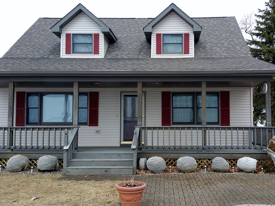 HOUGHTON LAKEFRONT - Great north shore location provides sunrise and sunset views. Built in 1994, this well maintained home features 6" walls, Anderson windows, open floor plan and beautiful stone fireplace. The 4th bedroom is a large bonus room that could serve as bunk room or game room. Attached 28' x 30' garage plus extra 16'x20' garage, central air, sprinkler system. The views from this perfect home with 60 ft of frontage are remarkable.
