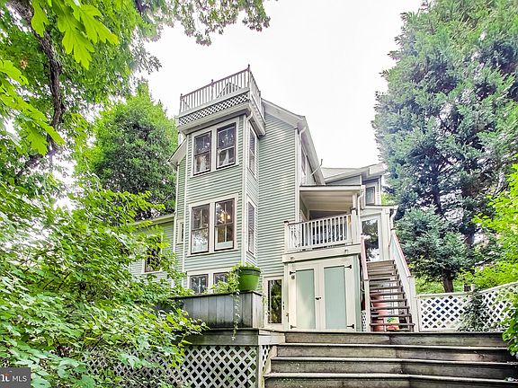 A rare Victorian treasure nestled in Takoma Park’s Historic District and central village location near Red Line Metro station, city hall and community center, public schools, town library, farmers market, shops, and restaurants; built in 1886 and featuring authentic architectural details: soaring ceilings; recessed wood, raised, paneled, pocket, and etched glass doors; burnished wood floors; a variety of oval, skylit, leaded, and transom windows; bullseye moldings, medallions, and chair rails; wraparound porches and balconies; all carefully preserved and updated by long-time owners. Four finished levels consist of seven (7) bedrooms, four-and-one-half (4.5) bathrooms, which includes a 2-bedroom IN-LAW SUITE. Here is a genuine collector’s item whose lush perennial gardens and sweeping wooded lot instill a sense of calm and respite. A National Register of Historic Places Nomination states "...7105 Holly Avenue is a late vernacular treatment of the cottage style of the mid-19th century. The many gabled elevations and the carpenter's Gothic verge boards attest to this fact...". Today's amenities and features include central air conditioning; built-ins galore; ample storage; a chef's kitchen loaded with cabinetry and stainless appliances; main-level mudroom and laundry; a two-bedroom IN-LAW SUITE; and lush perennial gardens. Three levels of this home have generated as much as $775 per day in short-term rental income. Appraisal figures for finished square footage above and below grade: 4,127; unfinished below grade: 370. You’ll love living in this historic gem.
