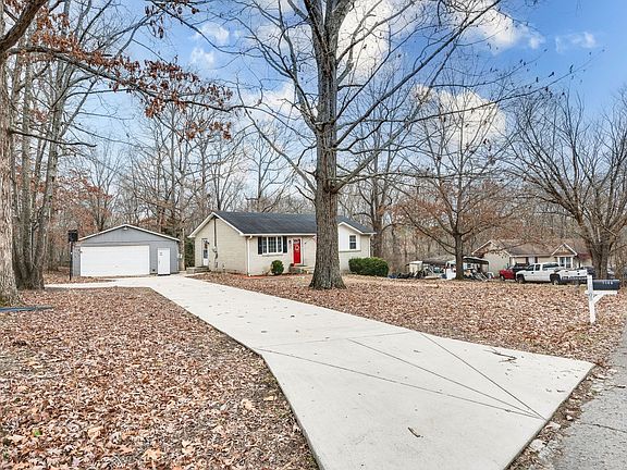This charming brick ranch nestled in booming Fairview sits on a huge tree lined lot, conveniently located near shopping and restaurants with easy access to I-40 and Downtown Nashville. It features beautiful hardwoods throughout, plus updated light fixtures, new paint, renovated kitchen with stainless steel appliances and back splash. Bath includes modern vanity and walk-in tile shower. Detached two car garage has endless possibilities for all your workshop, storage, or hobby needs. Entertain or relax and enjoy the wildlife from the large back patio. Home sits on a quiet cul de sac and is zoned for Williamson County Schools. Schedule your showing today!