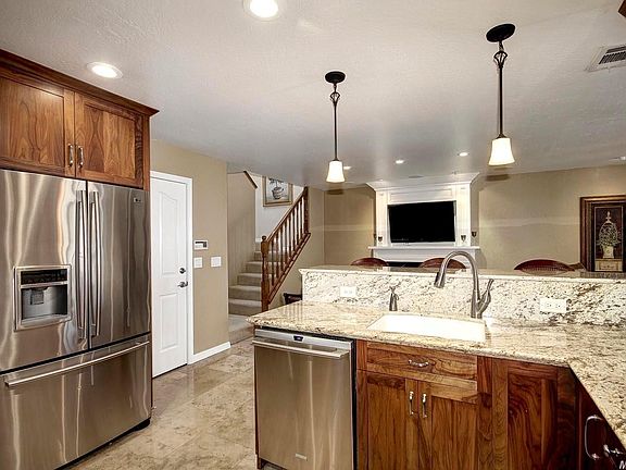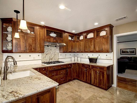Every detail was carefully selected & quality crafted by longtime contractor/designer owners. Gourmet kitchen w/ custom cabinets,6-burner gas viking cooktop,Dbl ovens,granite counters,opens to family & dining room w/ wet bar,gas fireplace,french doors lead to a stamped concrete covered patio & pergola surrounded by fruit trees. 2 master suites up and downstairs. Jetted tub,walk-in closet,recessed lighting. RV access,workshop w/ electrical. Close to a park & high pride of ownership neighborhood.
