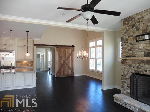 Almost new residence on one of the LARGEST and PRIVATE LOTS in Vickery. Master Suite, Guest Bedroom, and Office all on Main. Simply OUTSTANDING functional cosmetic Kitchen w/ HUGE Quartz Island, beautiful abundant cabinets, wine cooler, 48 inch fridge, 6 burner, large pantry, more! Family Rm w/ stacked stone wood burning FP. HUGE Bonus Rm up and 2 more Bedrooms each with own Bath. Massive garage! BASEMENT w/ tons of storage space stubbed for bath. EXCEPTIONAL 20 YEAR BUILDER WARRANTY TRANSFERS!