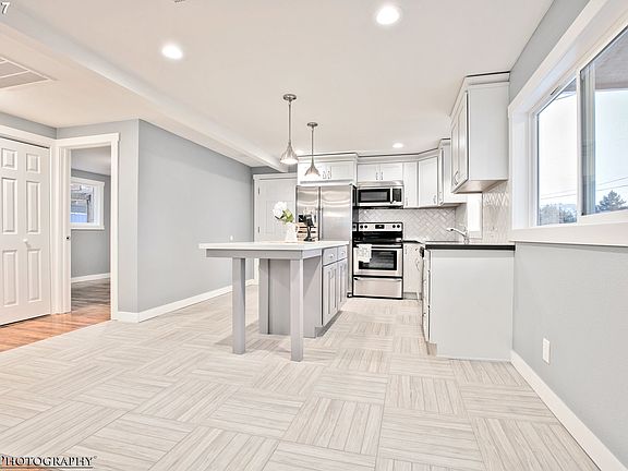 Move-in-ready! Clean & meticulous!Gleaming wood flrs, amazing open kitch w/an island, shaker cabinets, SS appliances, tile flrs & full backsplash, new lighting & plumbing fixtures, vinyl windows, new millwork & doors, fully remod bthrm w/all new int/ext paint! This charming bungalo sits on a large, fenced yard w/nice concrete patio w/beautiful trellis, covered entry, gorgeous landscaping! One attach garage! Close in Portland location!
