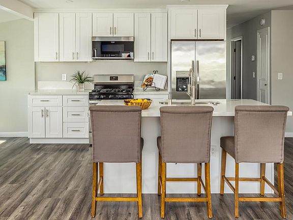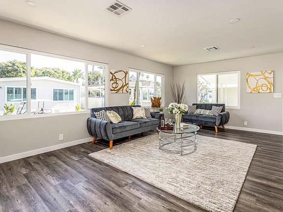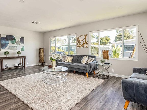 Enjoy 30 feet of Trex decking off the Master Bedroom sliding glass doors with views of the Greenbelt and the Lake - all for the lowest land lease available in Lakeshore Gardens. The home is located in Carlsbad's premier 55+ gated community just 2 blocks to the beach. Across from the gates is a full neighborhood shopping center and 2 blocks north is a Kaiser Clinic. The feel of the community and amenities is like living full time in a resort - heated pool, spa, and sauna, fully equipped fitness center, recreation hall, outdoor gas fireplace and firepit, library and many social activities every day. For active retirement living or while you are still working - Lakeshore Gardens is the place to live.