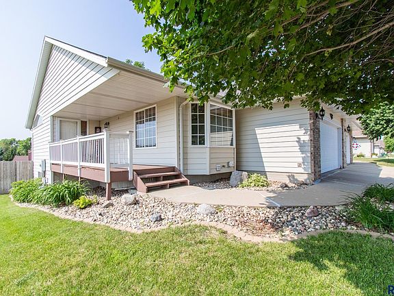 Come check out this 3 bedroom, 2 bath, 2 stall beautiful twin home with a great floor plan in Western Sioux Falls! Main living space is open with vaulted ceilings and a slider out to the deck. The kitchen has hardwood floors and a great dining space. Master bedroom has pass thru bathroom and large walk in closet. Don't forget main floor laundry! There is an additional bedroom on the main floor. Downstairs consists of a spacious family room with garden windows, third bedroom with a walk-in closet, and a full bath. There is lots of storage in mechanical room with shelving. Don't miss the beautiful yard, great landscaping, 2 tiered deck with fenced in back yard to enjoy those summer evenings! Don't delay call today!