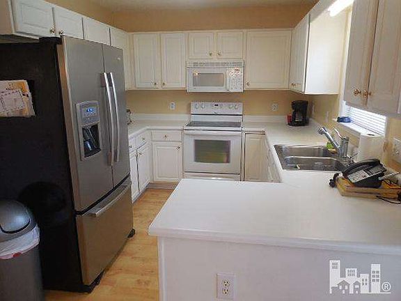 A home with a happy heart, this delightfully open and airy ranch is ideally located on a quiet cul-de-sac in a popular, sought-after community! Features include cathedral ceilings, light colored wide-plank wood laminate floors throughout except 2nd and 3rd bedrooms, great room with wood burning fireplace, fully equipped kitchen with stainless refrigerator and ceramic cooktop range, large master suite with tile bath and large tile shower, laundry room with washer and dryer, fenced back yard, attached garage with storage space, and lighted fans in all rooms. There is floored storage over the garage, and ample closet space inside. Beautifully kept, this home is ready for its new family!