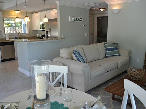 NEWLY REDESIGNED HOME ON ANNA MARIA ISLAND HAS GREAT CUSTOM FINISHES AND IS ACROSS THE STREET FROM A CANAL WITH RENTABLE BOAT SLIPS. THIS PROPERTY WAS COMPLETELY RENOVATED IN 2014/15 WITH A NEW KITCHEN AND BATHROOMS, SOLID GRANITE SURFACES, INCLUDING A RAISED BREAKFAST BAR, NEW TILE THROUGHOUT, CUSTOM WOOD CABINETS WITH SOFT CLOSE FEATURE, CROWN MOLDING, VAULTED CIELINGS, NEW WINDOWS AND DOORS, NEW ROOF, NEW HVAC SYSTEM, AND UPGRADED STAINLESS STEEL APPLIANCE PACKAGE INCLUDES A FRIGIDAIRE GALLERY CONVECTION OVEN AND MICROWAVE, ALONG WITH A FULL SIZE SIDE BY SIDE REFRIGERATOR. IT ALSO COMES TURNKEY FURNISHED WITH A PROFESSIONALLY DECORATED BEACHY DÉCOR. OUTSIDE IS A NEW HEATED SWIMMING POOL SURROUNDED BY TROPICAL LANDSCAPING. THIS PROPERTY ALSO HAS AN EXTRA LARGE DRIVEWAY PERFECT FOR PARKING EXTRA VEHICLES OR A BOAT. THIS WILL MAKE THE PERFECT SECOND HOME OR INCOME PROPERTY WITH GOOD RENTALS ALREADY ON THE BOOKS.