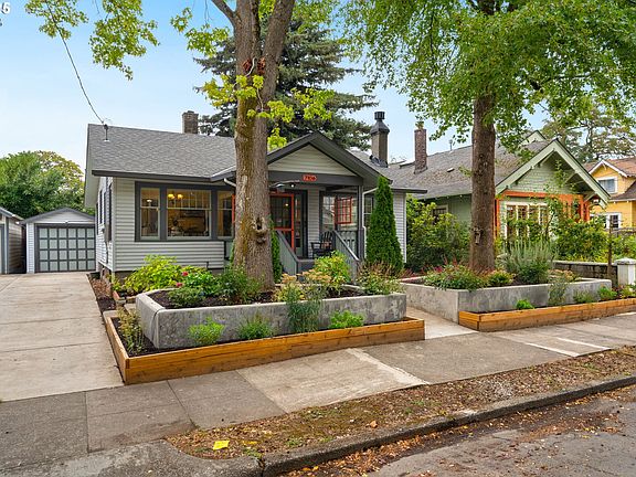 This charming bungalow blends modern upgrades with thoughtful design. The 2022 kitchen remodel features custom shaker cabinets, quartz countertops, a Miele dishwasher, and stylish Kraus faucet. The bathroom boasts a refinished tub, new vanity, and updated flooring. A versatile bonus room downstairs includes a radon fan, laundry area, foam tile flooring,and full waterproofing system. Enjoy year-round comfort with A/C, refinished hardwood floors, and new ceiling fans. Outside, a remodeled deck with cedar framing, Trex decking, and outdoor sink offers perfect entertaining space. Egress window has been installed in the basement for a possible second bedroom. Additional upgrades include a new fence, cement patio, and raised garden beds. Located in the desirable Sellwood-Moreland neighborhood—just 2 blocks from Westmoreland shops, groceries and near two parks within 0.8 miles. Move-in ready! [Home Energy Score = 6. HES Report at https://rpt.greenbuildingregistry.com/hes/OR10187433]