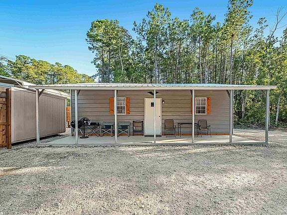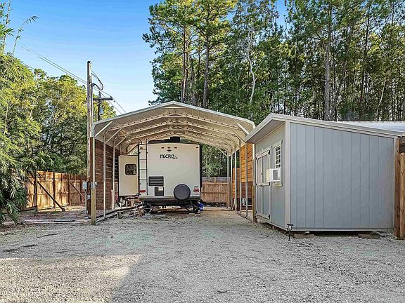Welcome to your weekend getaway or future home site! This barndominium style 2 bedroom, 1 bathroom house is now available for sale. The open floor plan allows for easy flow between the living area and the kitchen, making it ideal for entertaining friends and family. Outside, you'll find an array of features that set this property apart. With a 100 amp RV hookup and a metal carport, there is ample space for all of your recreational vehicles and outdoor toys. Additionally, a wooden outbuilding provides extra storage or a workshop space. The property also features an outdoor shower area. The wooden privacy fence surrounding the front part of the property offers a sense of seclusion and tranquility. With its close proximity to the Bon Secour River, dining/shopping and the beach, 7107 Cook Road is an ideal location with a lot of possibilities. Don't miss the opportunity to make it yours!