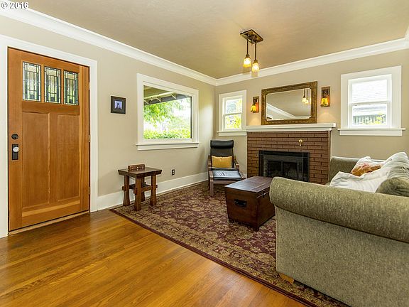 Classic Craftsman Bungalow on a quiet, sunny corner lot. Welcoming front porch. Period charm throughout; wood floors, Rejuvenation fixtures. Charming vintage kitchen w/ a cozy brkfst nook. Updates include 2014 sewer line & radon mitigation. Newer roof, furnace & A/C. Lower level 3rd bdrm may be non-conforming. Plumbing in place for basement bathroom. Ext. basement entrance. Detached garage. Income potential??Close to UofP, New Seasons.
