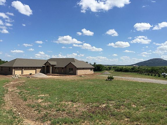 3440 SF finished space with 30’x12’ covered patio featuring built-in grill and smoker. 2-story 16’x16’ utility bldg w/ heat pump and power adjacent to home. Custom built cabinets, true out-the-roof vented cooktop. Double-wall ovens and Advantium Speedcook 220V oven in the kitchen’s island. Gorgeous view of Mt Scott out the wood-wrapped 16’ feature window. Massive walk-through closet is bigger than the three other bedrooms. Jetted soaking tub and three-way separate shower in master suite. Spacious open floor plan. Dedicated Dolby ATMOS theater room. CONTROL 4 home automation system for main areas and MBR. 3-car garage with 8’ door. Walk-up stairs lead to massive storage space above garage. 6’x8’ safe room built into the floor plan. Tankless (propane) water heater and gas 5-burner cooktop. Upscale granite through the home. Dedicated office with built-in shelves and cabinets. Fiber-optic internet installed. OTA antenna augments cable/satellite TV. Wood pattern ceramic tile floors. Dual heat pumps. Elgin School District and close to Lake Lawtonka. Property has rural water. 1-mi from Paradise Valley Fire Dept.