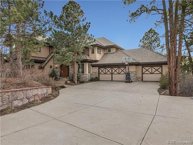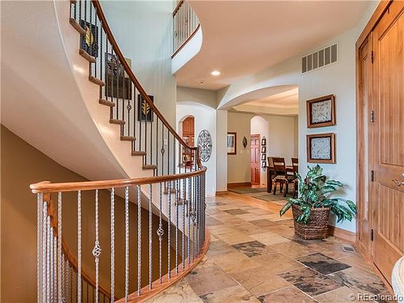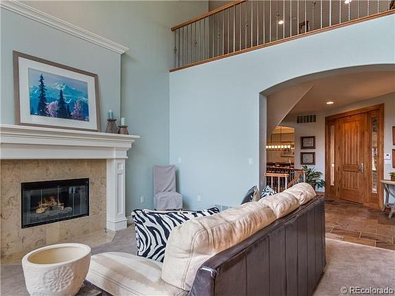 Unbelievable views of SW mountain range from front and treed hillsides from back deck. Ultimate privacy, here on 3/4 acre lot. Spectacular custom home with gorgeous architecture., fin. walkout basement with full bar and billiards area. 100 year old Walnut bar, lighted rock wall bar, large wine closet, and sauna! Magnificent place to entertain and watch the game! 4 firepalces throughout. Custom slate flooring, extensive wood flooring, gorgeous open kitchen with adjoining bulters pantry and full wet bar. Spacious master suite with incredible views and large master bath with all the desires. Custom wood trim, doors and built-ins throughout. Main floor study, Jack and Jill bath, huge garage. So much more. Walk to the Ridge Golf Course and Restaurant. Buyers will love this custom beauty! Priced to sell-15 minutes to lone tree/Park Meadows-20 min to DTC, close to all conveniences and great local restaurants!At the end of a cul de sac! great views Large lot for kids to run and play.