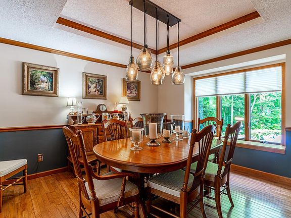 - 1st Bdrm En Suite, Bookcases, Cathedral Ceiling(s), Tray Ceiling(s), Ceiling Fan(s), Walk-In Closet(s), Countertops-Solid Surf, Crown Molding, Eat-in Kitchen, Entrance Foyer, Natural Woodwork, Double Vanity, Tub and Separate Shower, Custom Cabinetry