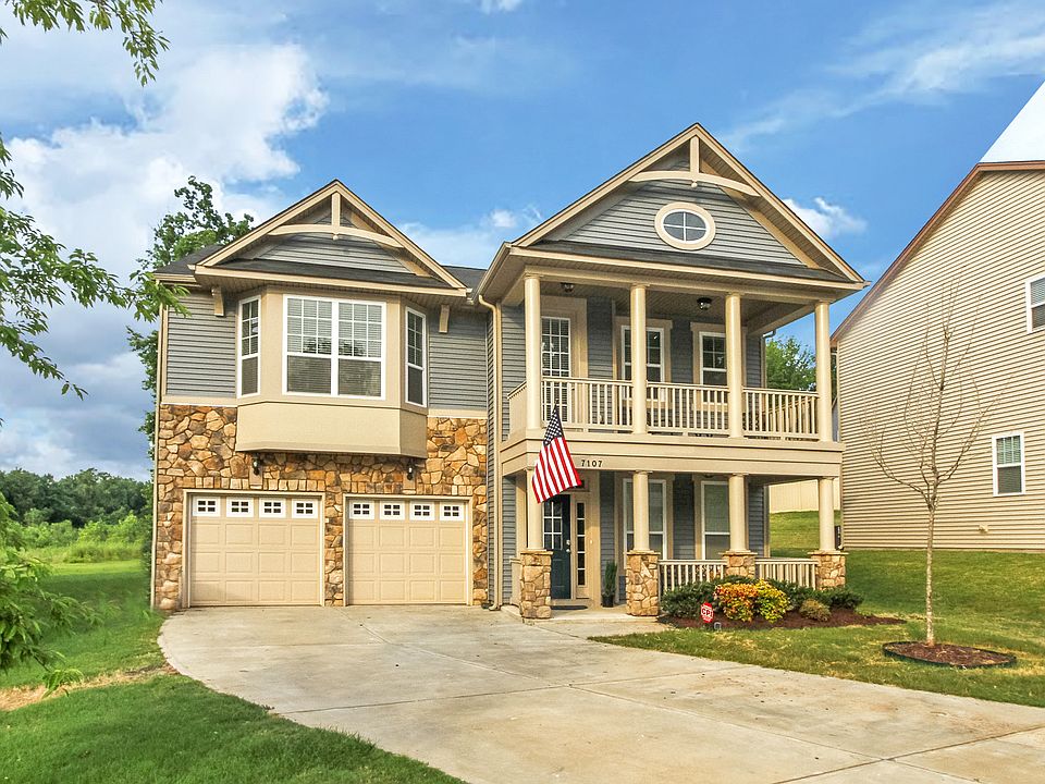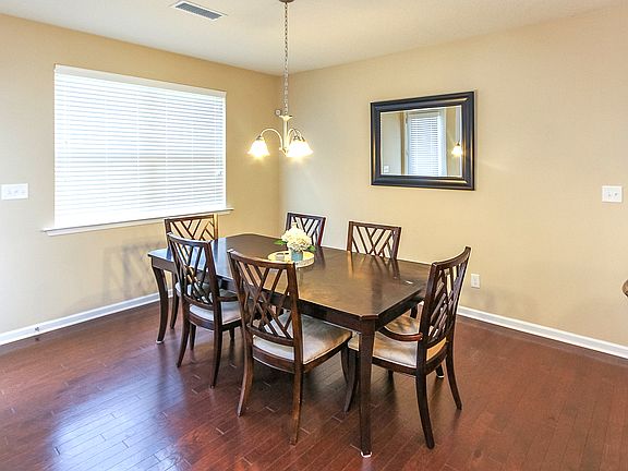 With these upgrades, this beautiful, custom-built home, located on a quiet cul-de-sac, was meant to impress from the time you pull into the driveway! Built in 2013, it boasts a two-car garage---which leads directly inside to the Stop & Drop--- a stone accented, facade; and a coveted, rocking chair front porch for those warm, Southern nights. Once you enter the four-bedroom, three-bathroom home, the upgrades continue: Your first floor living spaces have gorgeous hardwood floors throughout. The Gathering Room is a great place to do just that: The flat-screen TV and surround sound make it a perfect room to watch movies or get together for sports season. You'll also enjoy watching the leaves and snow fall outside as you sit in front of the gas fireplace. The formal dining room is conveniently located off of the kitchen; plus, you also have a separate, extended Breakfast Nook that overlooks the backyard. Your guests will enjoy their private retreat in the first-floor suite.Upstairs, there are two more bedrooms, nearly equal in size, which share a full bathroom with dual sinks; a conveniently-located, upstairs laundry room; and an added loft with closet, great for a media area, playroom, or home office. The owner's suite includes His and Her Walk-In closets, double sinks, and a separate soaking tub and shower. Look no further because your home is here!