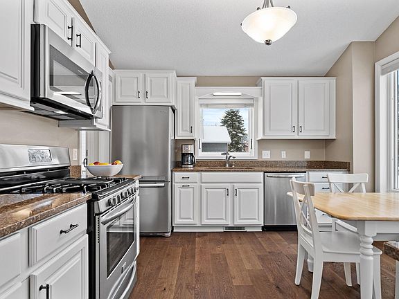 This beautifully maintained home features 3 bedrooms, 2 bathrooms, and a spacious 3-car garage! Offering both style and functionality with upgraded hardwood on main level and carpeted upper and lower levels. The updated kitchen features modern appliances and ample storage space. The furnace and A/C are just 5 years old, ensuring comfort and efficiency year-round. A deck is accessible from main level and on lower level, a walk-out to patio area overlooking the pond, both are perfect for summer outdoor barbecues. Landscaping around the house includes easy-care bushes and plants. An irrigation system simplifies lawn maintenance, while nearby walking and biking trails near Eagle Lake offer endless opportunities for outdoor recreation. Conveniently located close to Arbor Lakes, you'll have easy access to a wealth of shopping, dining, and entertainment options. Don't miss your chance to experience the best of suburban living, schedule a showing today!