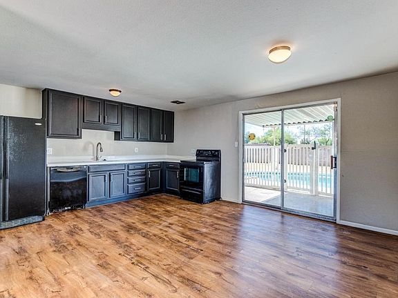 Great 4 Bedroom 1 Bath single story home with a pool! Wood and carpet flooring throughout, neutral color palette, spacious and well taken care of. Eat in Kitchen features a plethora of custom cabinets, all black appliances. Kitchen overlooks dining area and family room. Bedrooms are all generous in size with ample closet space. Covered Patio out back with sparkling blue pool, perfect for entertaining friends and family! Definite Must See!