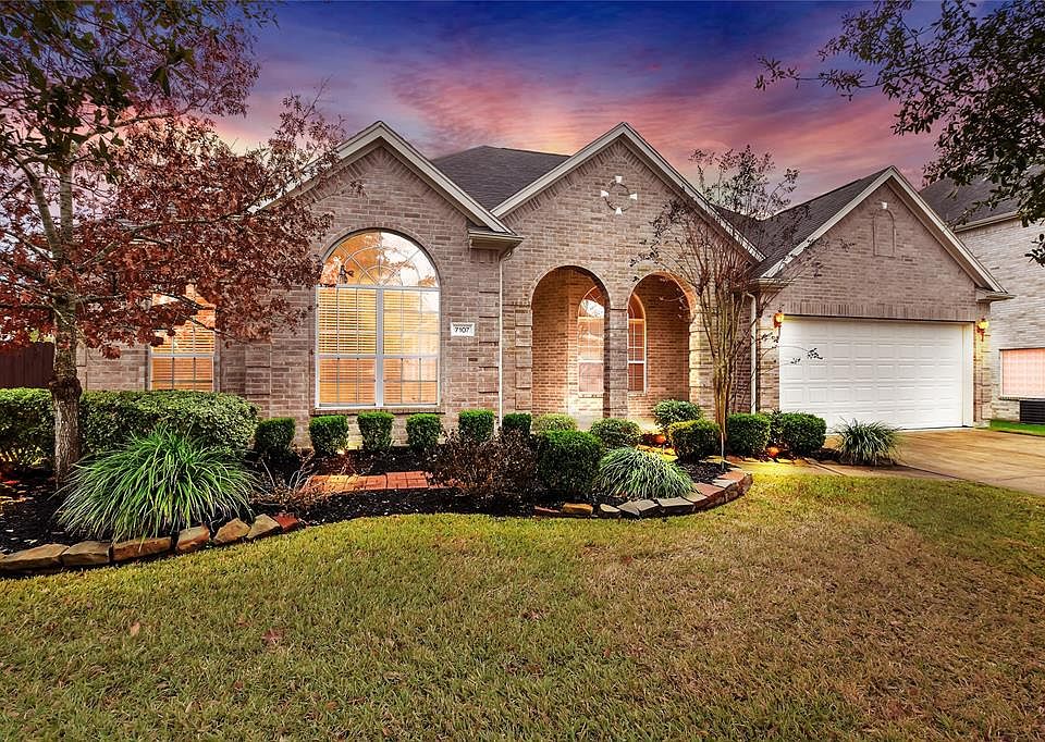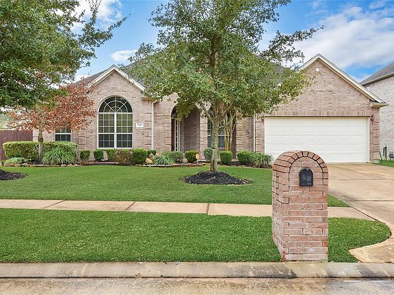 Gorgeous one story on corner lot with a backyard paradise. This spacious 4 bedroom open floor plan is a great place to entertain family and friends. Gourmet kitchen with SS appliances, double ovens, tiled back splash, and lots of cabinets for storage. Formal dining, living, study with double French doors, plantation shutters, and secondary bedrooms upgraded with wood plank tile. Private master suite with wood plank tile floors, Jacuzzi tub, and spacious walk-in closet. Covered patio with outdoor kitchen, wood burning fireplace, heated pool with water feature and spa. Home freshly painted, new hot water heater, full sprinkler system. Golf course community, minutes from Grand Parkway and The Woodlands.