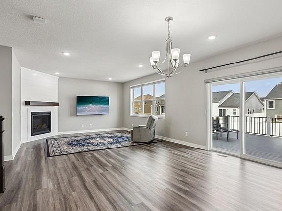 Discover elegance in this pristine 5 bedroom, 4 bathroom home in coveted Avonlea community. Flowing layout showcases a welcoming living room with cozy fireplace and expansive windows that flood the space with sunlight. The kitchen impresses with white 42" staggered cabinetry, stainless steel appliances, and quartz countertops surrounding an island. Step through sliding glass doors onto a stunning maintenance-free patio. Main level features engineered hardwood flooring throughout and includes a specialty room ideal for a home office. Upstairs offers four bedrooms including a Primary suite with separate tub/shower and walk-in closet. The finished basement provides the 5th bedroom plus a family room with wet bar.