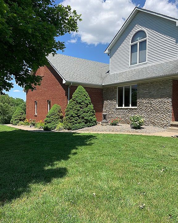 The custom built one owner home sits on a 3.69 acre lot on a quiet cul-de-sac near Charlestown and River Ridge. The all brick and stone 2 story home has an attached oversize heated garage. This home has a central vacuum system. The main floor features a laundry room with custom cabinetry, living room with granite fireplace and marble tiled foyer, half bath, kitchen, and master suite. This room features a vaulted ceiling, 2 walk-in closets. The bath has a skylight, twin vanities, large custom shower, heated floors and a heated towel bar. The kitchen has a vaulted breakfast nook, all electric appliances, and a granite topped island. The second story has two large bedrooms and the full bath features a skylight and large vanity. There is a separate HVAC unit dedicated to the 2nd floor. The walkout basement has a full bath, wet bar, gas fireplace, and mechanical room that houses propane furnace, electric water heater and water softener. This room also has shelving for storage. There is a 2 1/2 car outbuilding with brick facade. This building is also heated. The home has septic system.The utilities are Watson Water and Clark County REMC.