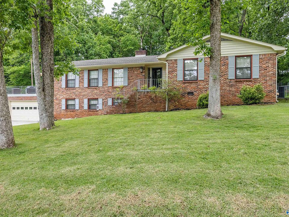 LOCATION!! Gorgeous full brick one story home with basement in the very desirable Jones Valley Estates. The updated kitchen has a large island, double convection ovens, stainless appliances, and leads to an outdoor patio. There is a formal living room and dining room. The family room features a fireplace with built in cabinets. The master suite is spacious on the main level. There are hardwoods throughout the main living areas upstairs. The basement has LVP flooring, bonus room, bedroom, and a bathroom. Fully fenced large treed backyard can be enjoyed from the roof top deck (concrrete) on top of the garage.