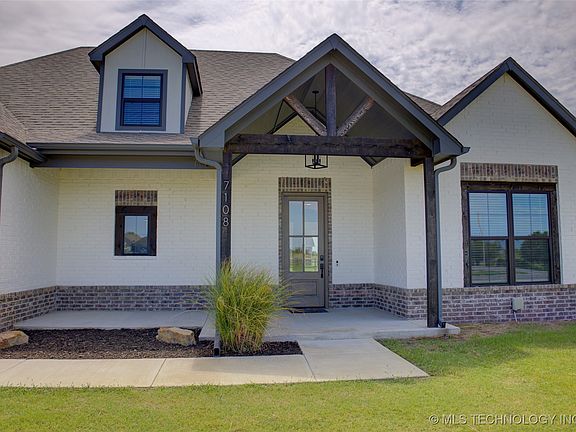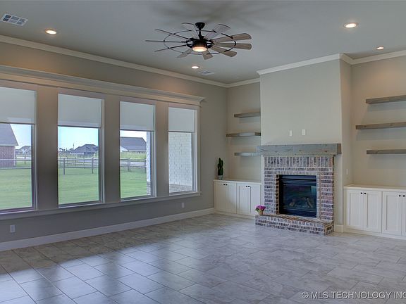 Welcome to your new dream home in Collinsville, OK! This stunning Heidy Plan by Bravo Builders is a split plan built in 2021 and offers 5 bedrooms, 3.5 baths, and a spacious 3-car garage. With 3172 square feet of living space, you'll have plenty of room for all your needs as this home has loads of storage options. Situated on a half-acre corner lot with a fenced yard, this home welcomes you with a hardwood entry and a vaulted living room with a fireplace and a wall of windows looking over the backyard. The kitchen features top-of-the-line appliances, an oversized island with storage, and a large HIDDEN walk-in Pantry! The primary bedroom (down) has a trey ceiling and a beautiful ensuite bath with double vanities, a soaking tub, and a walk-in shower.