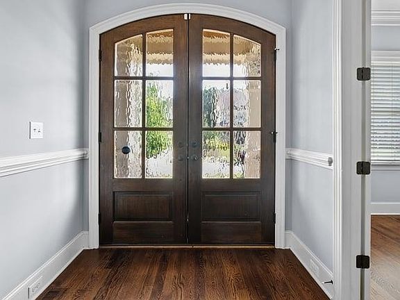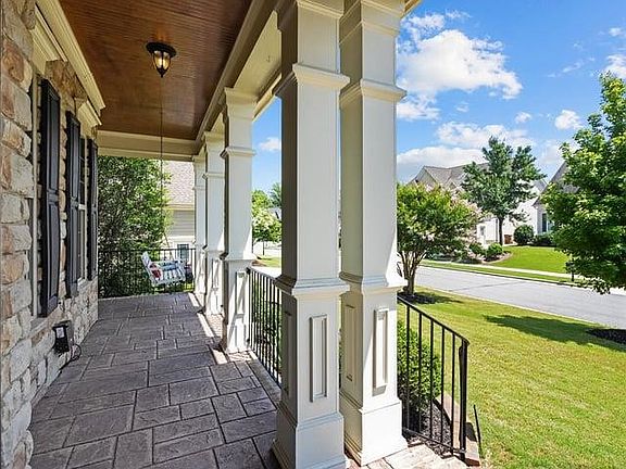 Gorgeous custom home on a private .3 ac culdesac lot in West Cary. Wrap around porch & beautiful double doors welcome you to the foyer w/gleaming hardwood floors and extensive millwork w/arched doorways on 1st floor. Home office or LR & formal dining room with a triple trey ceiling. The incredible chef’s kitchen has a 6 burner gas cooktop, huge island, granite counters, tile backsplash, reverse osmosis water filter. Refrigerator conveys. The family room welcomes you with its gas fireplace, custom shelving & opens to the beautiful sunroom through arched doors. Step to the special outside space w/stone patio, firepit & pergola. Escape to the spacious primary bedroom enhanced with a trey ceiling, spa bath, & private sitting area. 3 more second floor bedrooms, 2 with a shared bath, and the third with a half bath. W/D conveys. Third floor is great gathering room w/full bath plus walk-in storage. Side entry garage w/electric car charging. Private lot includes several fruit trees, raised garden area, basketball goal & play set. Home warranty included. Highcroft Village pool access. Easy access to Hwy 55, 540, RTP, RDU.