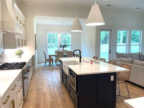 Water Views! A spacious kitchen features a pull-up island with dual sinks, prefect for