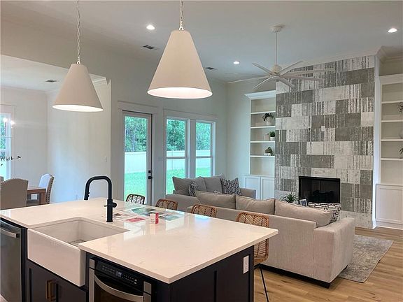 striking fireplace arrangement and an entry to the rear patio. Relax in the primary bedroom