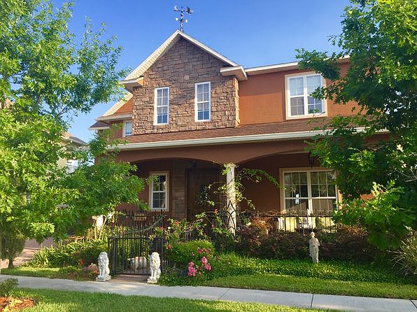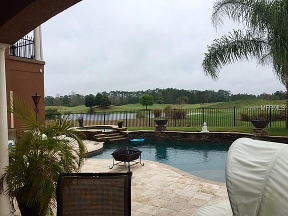 This Old World Chateaux Charmer is ideally located on an oversize golf course pond front lot. Directly facing hole five and overlooking two golf course lakes. This one of a kind true custom home is the best in luxury design that Harmony has to offer. The 4700 square feet of lavish living space includes: 5 bed/4 bath/2 half baths and media room, oversize wooden front door with speak easy, double master suites, professional grade gas lined interior designed kitchen w/ wine and beverage coolers, stainless steel appliances, solid walnut staircase, hand shaped wood and stone floors, Italian plaster walls, antique fixtures, chandeliers, and vanity sinks, 10' ceilings with 8' solid wooden doors. New tankless water heater, designer pool featuring double copper bowls with water fall on stone deck overlooked by two balconies. Front facing garage, no back alley way. Mature roses and landscaping, wrought iron fencing, gates, and railings. If you're ready for tranquil space with a luxury feel, then its time to come home. Harmony includes parks, recreation facilities, pet parks, fishing, boating, hiking, shopping, restaurants