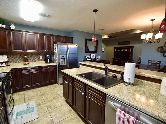 This gorgeous well maintained Brick front, vinyl sided home has elevated trayed ceilings in the main areas of the home giving it a very spacious, open, and elegant feel. Gorgeous Galley style kitchen with Breakfast bar and Stainless Steel appliances, granite-look countertops, and custom maple cabinets. The huge Master suite has a trayed ceiling, and invites you in. The master bath. Which boasts double vanities, and a huge shower/tub combo. The three additional bedrooms are good sized with ceiling fans, and large closets in each. The screened Florida Room invites you outside to the beautiful backyard.