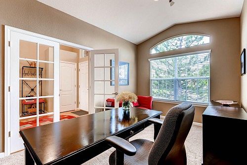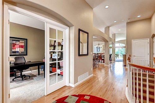 Elegant Ranch home on corner lot is maintenance-free and is located in the very desirable golf community of Saddle Rock! This spectacular ranch has a lovely open concept floor plan. Features include 2 bedrooms, 2.5 baths, open great room, formal dining room, gourmet kitchen w/island and custom cabinetry, study with French doors, master suite w/five piece bath, walk in closets, vaulted ceilings, gas fireplace, main floor laundry, very well maintained hardwood floors, plush carpeting, double pane windows w/custom Hunter Douglas blinds offering lots of natural light throughout! This gorgeous home has a full basement with rough in, ample opportunity to finish. HOA maintains front and back lawn, trash, snow removal, and recycling! Outdoor amenities with this gorgeous property include two private community pools, tennis courts, clubhouse, parks, walking trails, and Saddle Rock Golf Course. You won't want to miss out on this beautiful home, it won't be available for long! Must see!