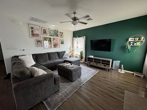 One-story single-family home in Austin, TX. Appliances included are refrigerator/freezer, oven, microwave and dishwasher. Fenced in private back yard that backs up into a green space. Neighborhood includes a pool, walking trail surrounding a pond and 2 children's playgrounds. Neighborhood is 3 miles from Mckinney Falls state park, 5.6 miles to the Airport and 8 miles from downtown Austin.