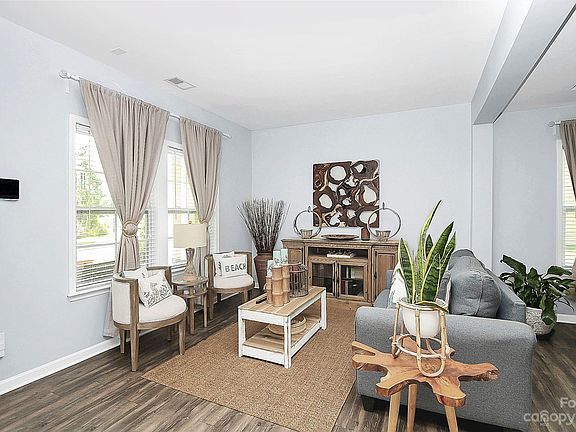 Super fabulous 5BD.4BA home with loft. Lovely front porch invites you in w/maintenance free flooring. Large living rm & Family rooms boasts wall of windows with corner fireplace. Spacious kitchen with curved breakfast bar, granite, tiled backsplash and s/s appliances. First Floor bedroom and full bath on main. Second floor owner's suite has coffered ceilings with 2 closets and private bath. Great loft allows flexibility for TV room, exercise, reading, office, etc. Close to I77 & I485, shopping, schools, & walking distance to Clarks Nature Preserve & community park features a playground, pickleball, basketball sport court, community garden, dog park and more