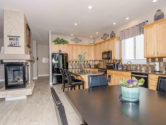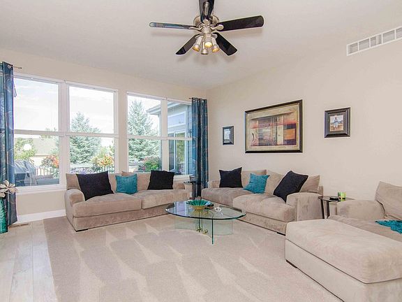 When you walk into this open floor plan ranch you will feel right at home. This home has been truly loved from the inside to the outside. Lots of new throughout! This 4-5 bedroom has plenty of space with it's pool table area (which stays), cinema room with projector, screen and components that stays, and upstairs great room. The front and back yards are truly a masterpiece! Nice deck with solar lights and entrance from Master and nook. Located just minutes, from Park, Stores, Restaurants, and I-25. Come take a look today.