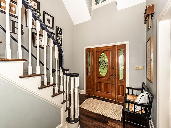 Serene, private setting. Enjoy easy living in this brick home with gleaming Brazilian Walnut plank hardwood floors, gourmet kitchen with custom cabinets with soft close drawers, large granite island, bar seating, gas cooktop, breakfast area, and a morning room. Owner's suite on the main floor with luxurious private bath with oversized shower and soaking tub. Upstairs find three guest rooms which share a hall bath and a play room with custom built-ins. Finished basement offers a flex space offering a media room or den plus a work out room! Out to the back yard enjoy the screen porch, the patio, the deck, or the pool with a pool house! Beautiful established landscaping including dogwoods and azaleas. Weddington schools!